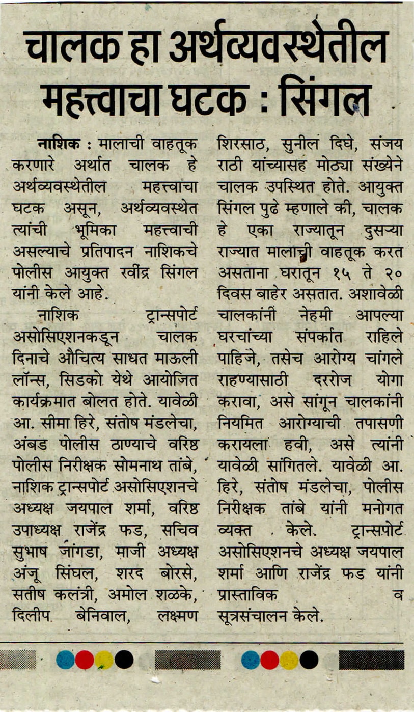 First time Drivers Day Celebrated at Nashik thru us on occasion of Viswakarma Jayanti Day.